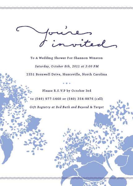 Recently done simple bridal shower invitations. The bride's favorite flower is hydrangea, so some hand-drawn flowers had to make an appearance, coupled simply with a breezy, hand written script and plenty of lovely white space.